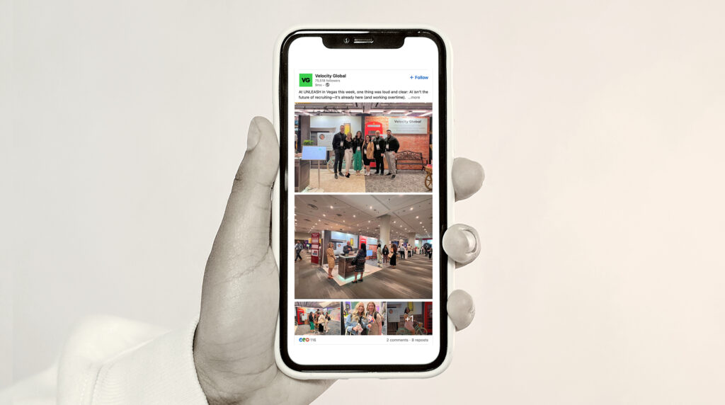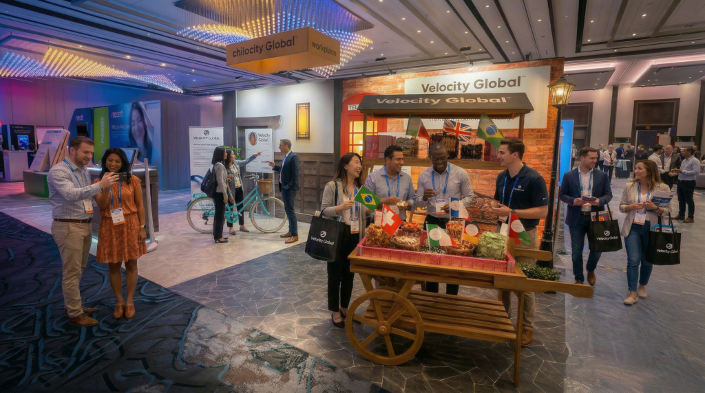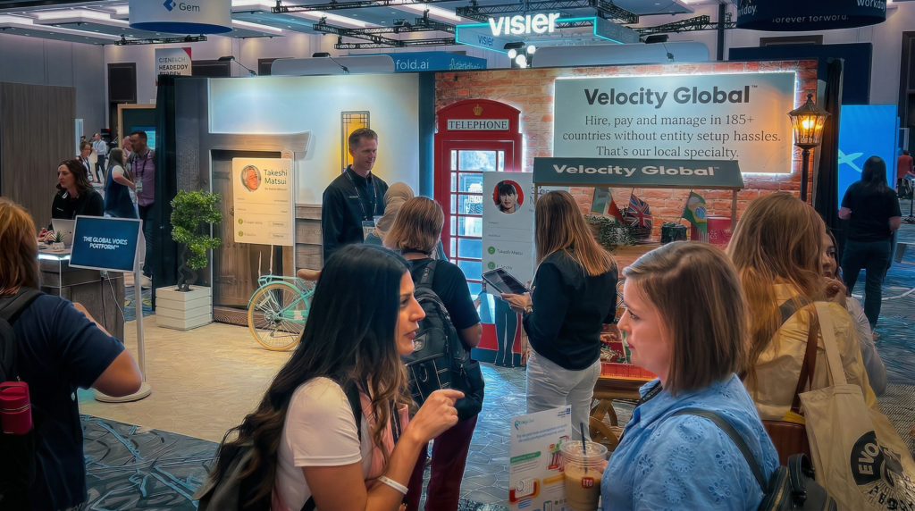 CHALLENGE: Velocity Global, a leader in global workforce management, needed a tradeshow booth with stopping power that could clearly communicate the simplicity of hiring, paying, and managing talent across 185+ countries without entities. In a crowded expo environment filled with technical messaging, the challenge was to generate a memorable experience that would immediately resonate with HR leaders and business decision-makers visiting the event.