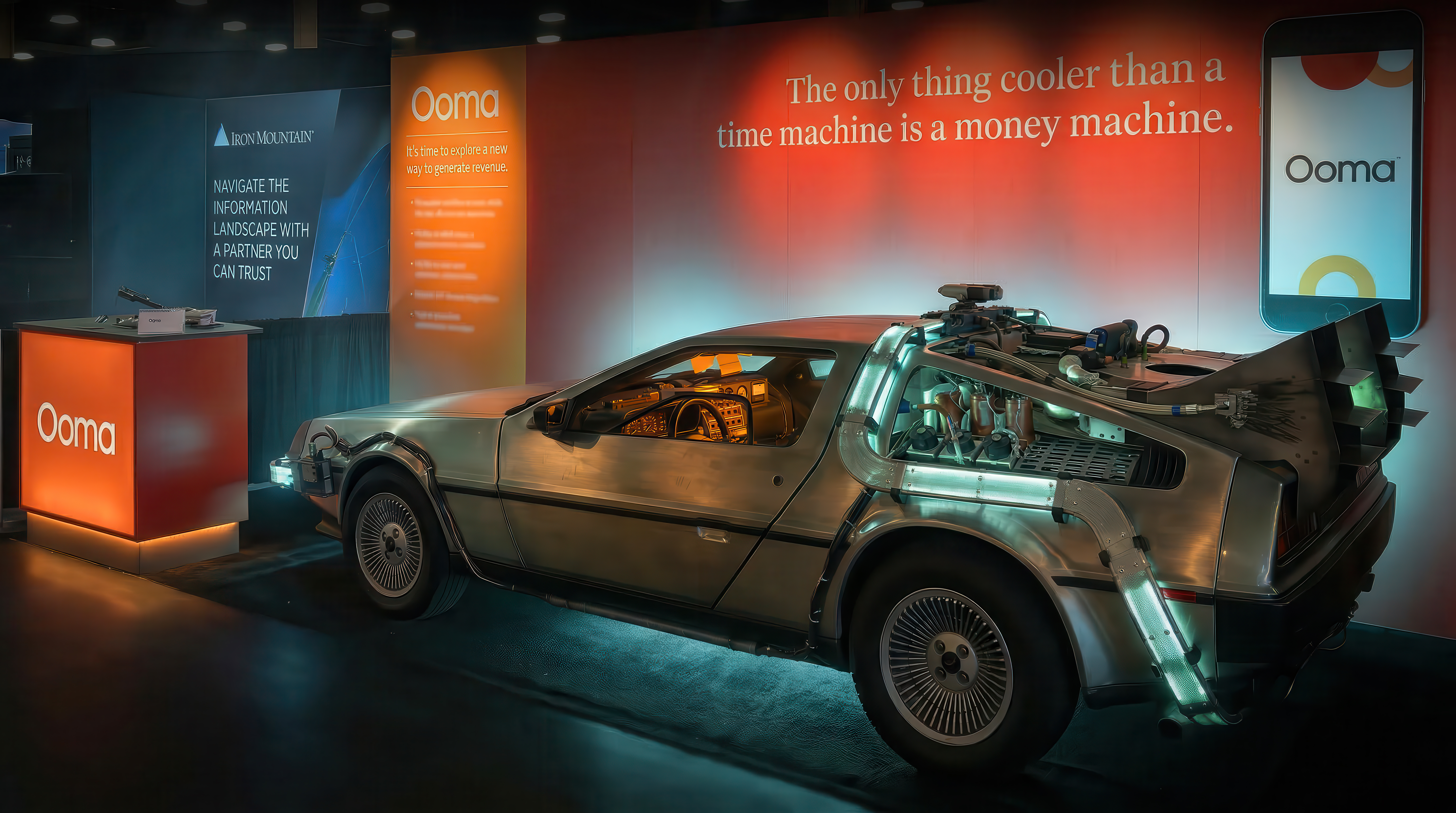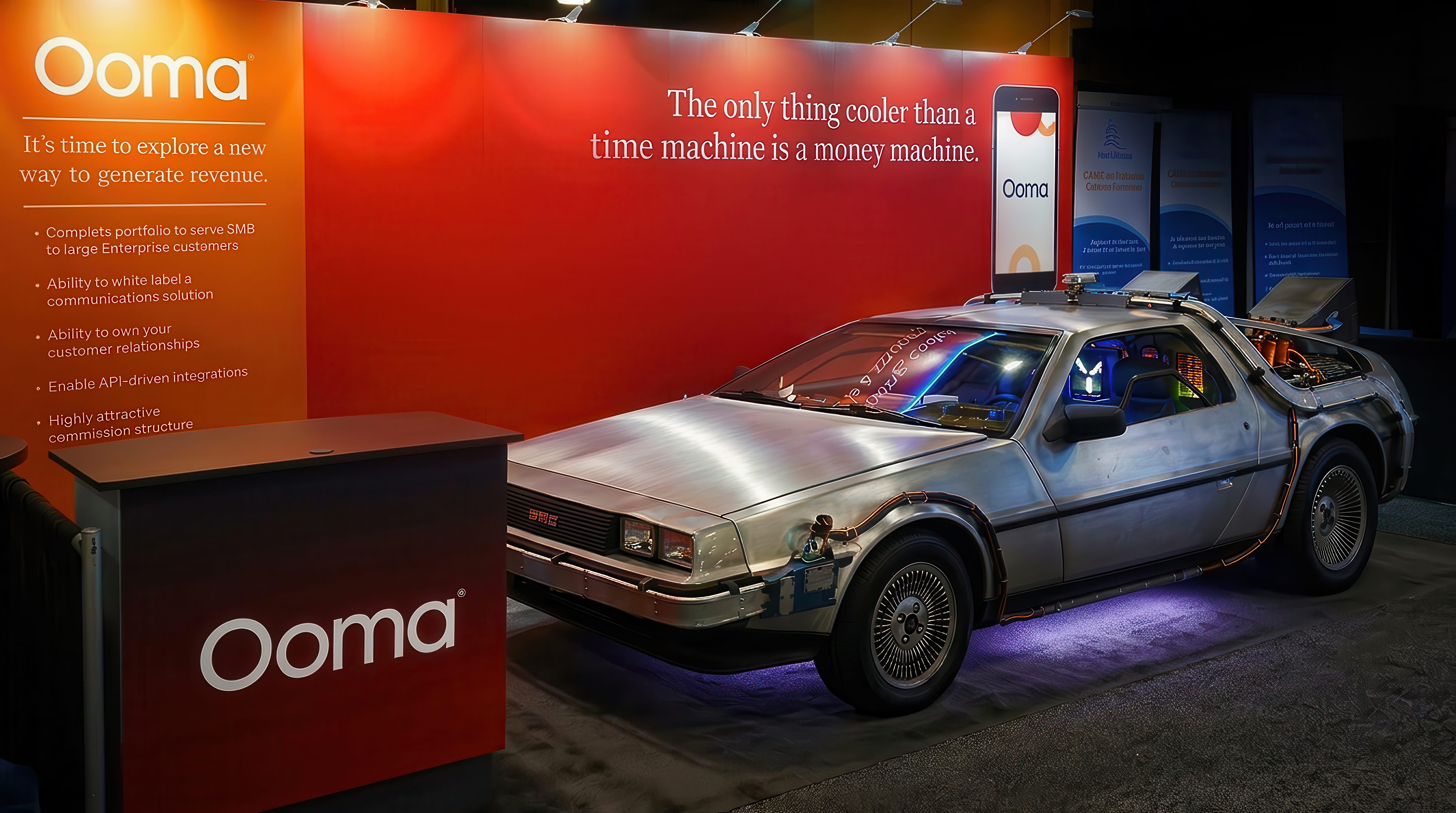 SOLUTION: We developed a compelling creative concept built around the theme “Ooma is a Money Machine,” drawing inspiration from the iconic DeLorean in Back to the Future. The result was a highly successful tradeshow presence that captivated attendees, reinforced Ooma’s value as a revenue-driving solution, and generated a significant increase in leads and engagement.
