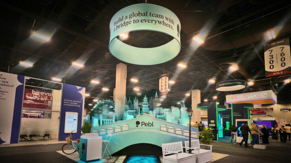 CHALLENGE: Pebl needed a tradeshow booth with immediate stopping power—something that could visually express how easily companies can hire and manage talent across borders. In a crowded expo hall full of technical HR messaging, the challenge was to create a memorable experience that would quickly resonate with HR leaders and global hiring decision-makers.