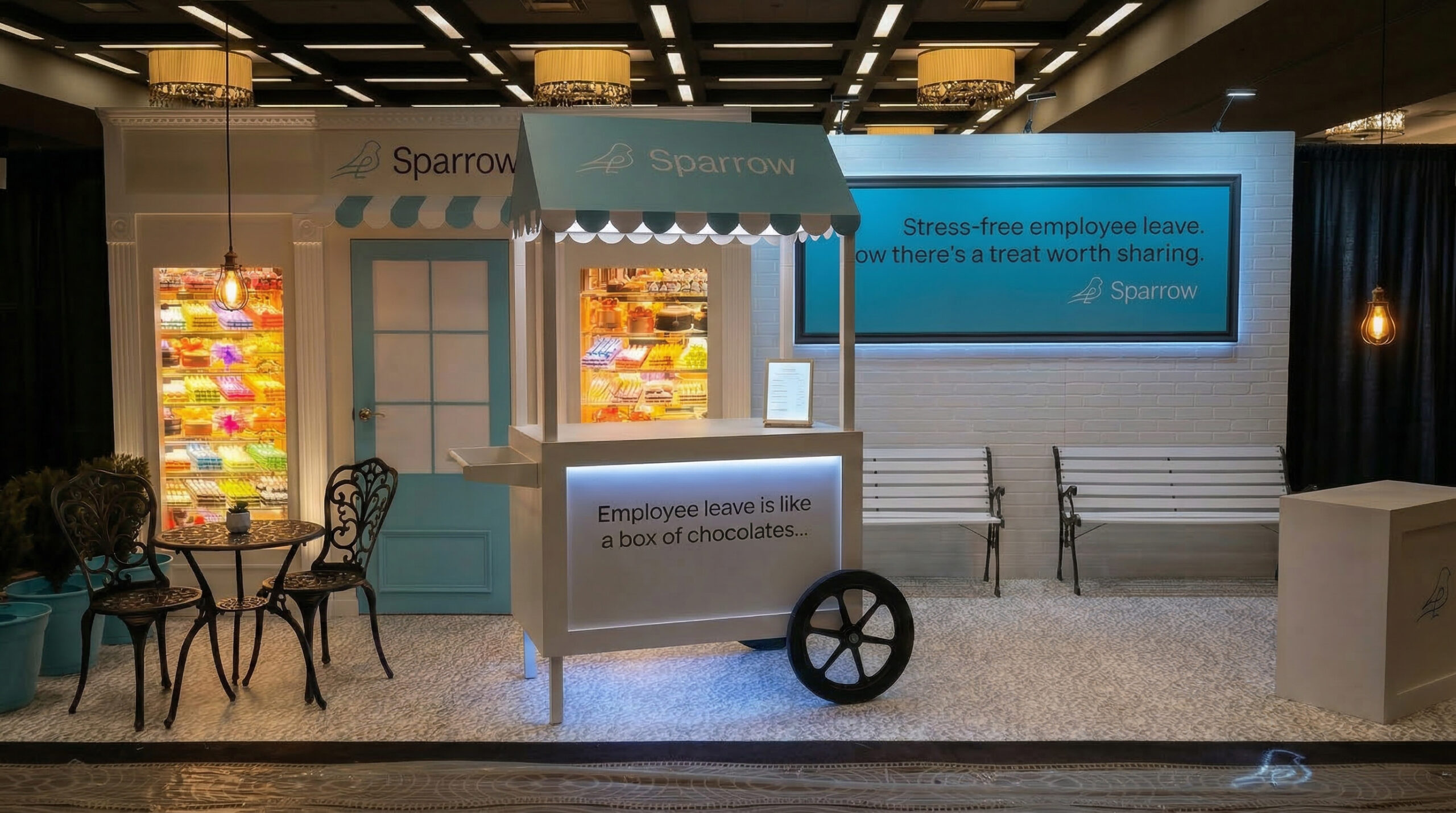 CHALLENGE: Sparrow, a leading provider of leave management solutions for businesses, needed a high-impact tradeshow booth concept designed to captivate and engage its predominantly female HR audience. The goal was to create an immersive experience that effectively communicated Sparrow’s core benefits in simplifying employee leave.